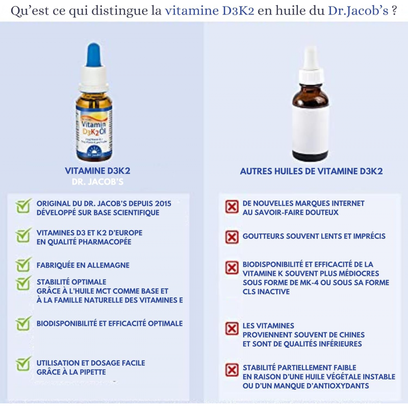 La vitamine K2 est la MK-7 à longue chaîne et est particulièrement biodisponible, avec une demi-vie d‘environ 3 jours & une durée d‘action nettement plus longue que la vitamine K1 (1 à 2 heures).