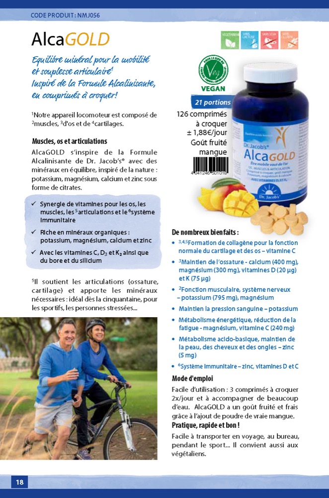 Préservez votre mobilité articulaireAlcaGOLD s’inspire de la Formule Alcalinisante de Dr Jacob’s® :