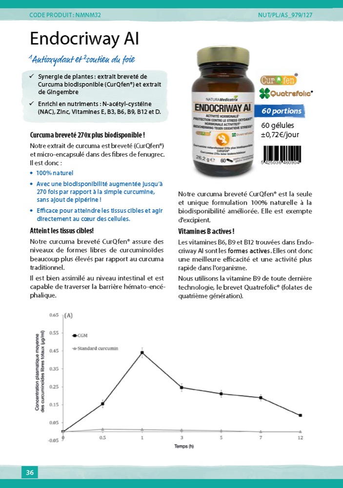 5 composants conservés de la formule initiale Endocriway : curcuma biodisponible, Zinc, vitamines D, B6 et mix de tocophérols/tocotriénols