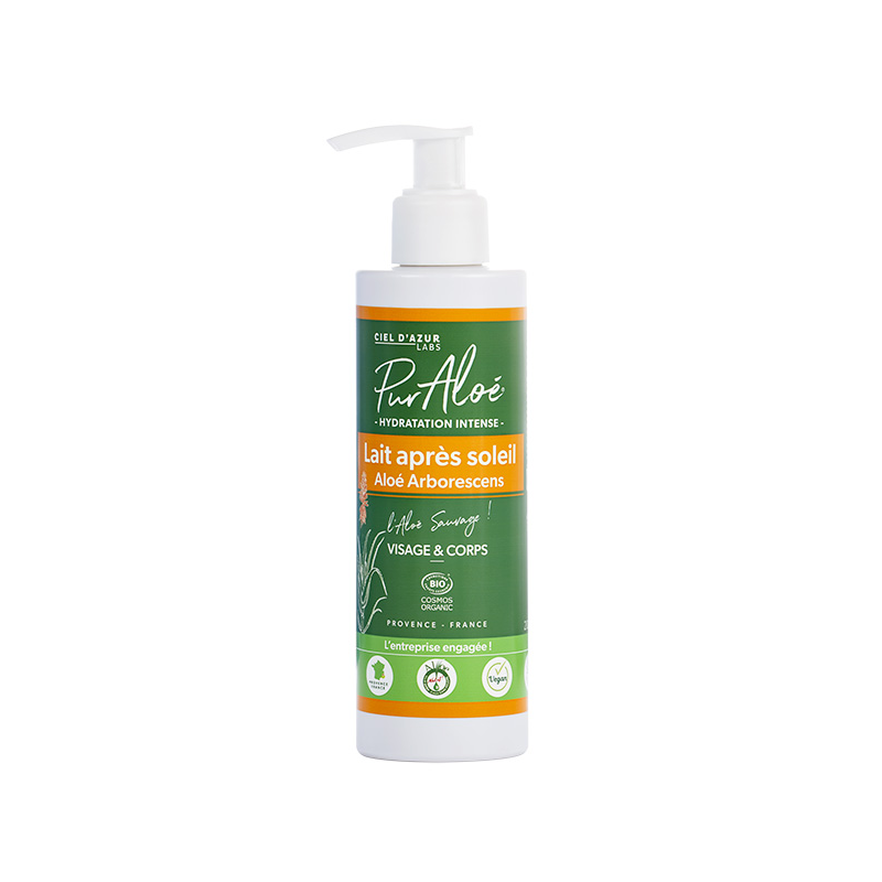 Notre lait après-soleil est fabriqué en Provence, en France, en respectant les normes strictes de fabrication écologique. Composé de 50,4% de jus d'Aloé Arborescens natif, d'hydrolats de bleuet et de menthe certifiés Bio, et d'huiles de coco et de jojoba certifiées Bio, il offre une hydratation intense des couches superficielles de l’épiderme.