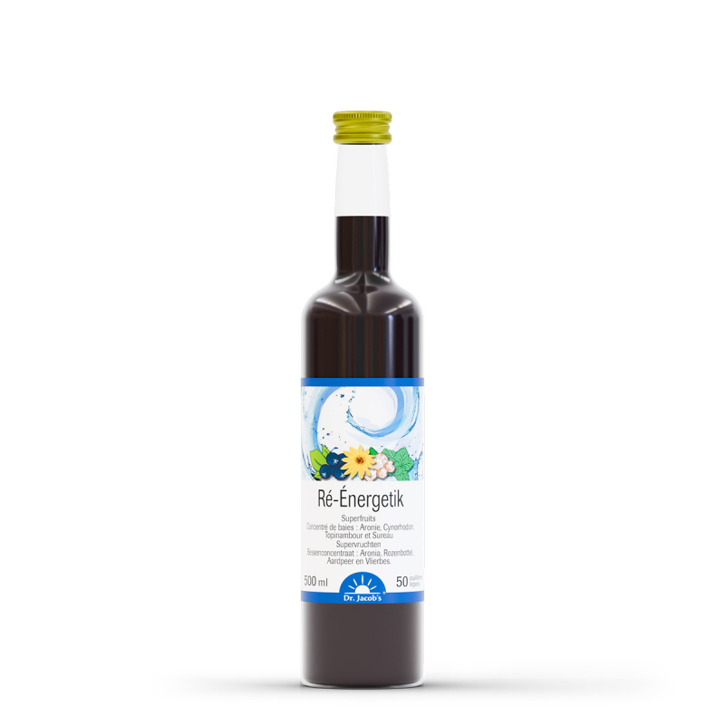 Ré-Energetik est d'une aide surprenante. Aronie, Cynorrhodon, Topinambour et jus frais de sureau complètent son action.
