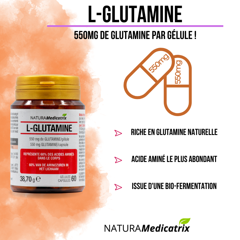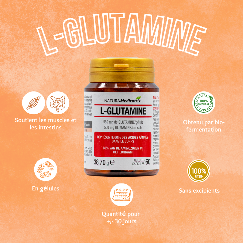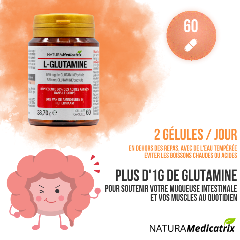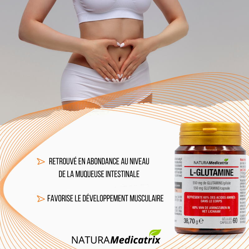 La glutamine est l’acide aminé le plus abondant dans le sang et dans les muscles. On la retrouve également au niveau de la muqueuse intestinale.
