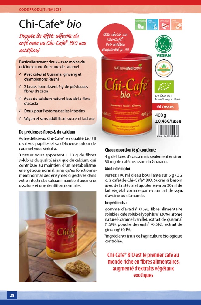Le Chi-Cafe® bio, un bel apport de fibres alimentaires de qualité et de calcium naturel, une combinaison gagnante !