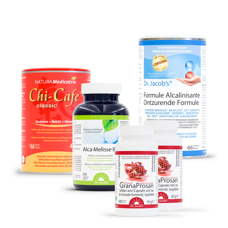 20h30, après votre repas, l’ALCALIN DÉ-STRESS, la Formule Alcalinisante augmentée de mélisse, l’Alca-mélisse-B+. Le stress provoque de l’acidité; la mélisse est un relaxant naturel parfait pour passer une bonne nuit tout en gérant notre acidité.