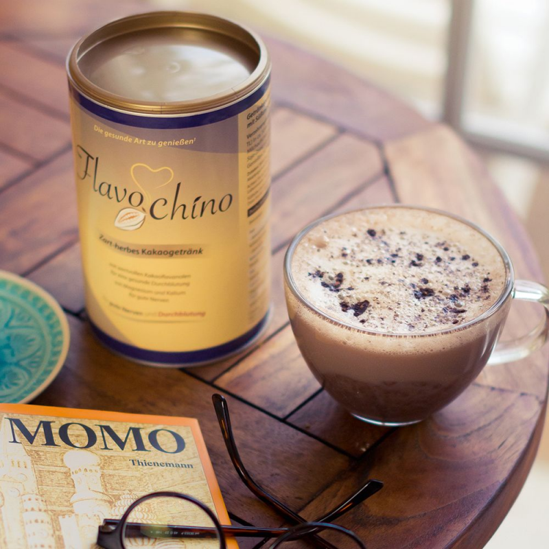 La consommation quotidienne d’une portion (3 c. à café – 15 g) de Flavochino fournit plus de 200 mg de flavonols de cacao qui soutiennent une circulation sanguine normale. Flavochino est pauvre en graisses (6,6 %).