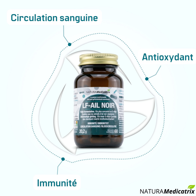 LF-AIL NOIR contient de l’ail noir qui permet de générer naturellement des composants bioactifs avec des concentrations beaucoup plus importantes :