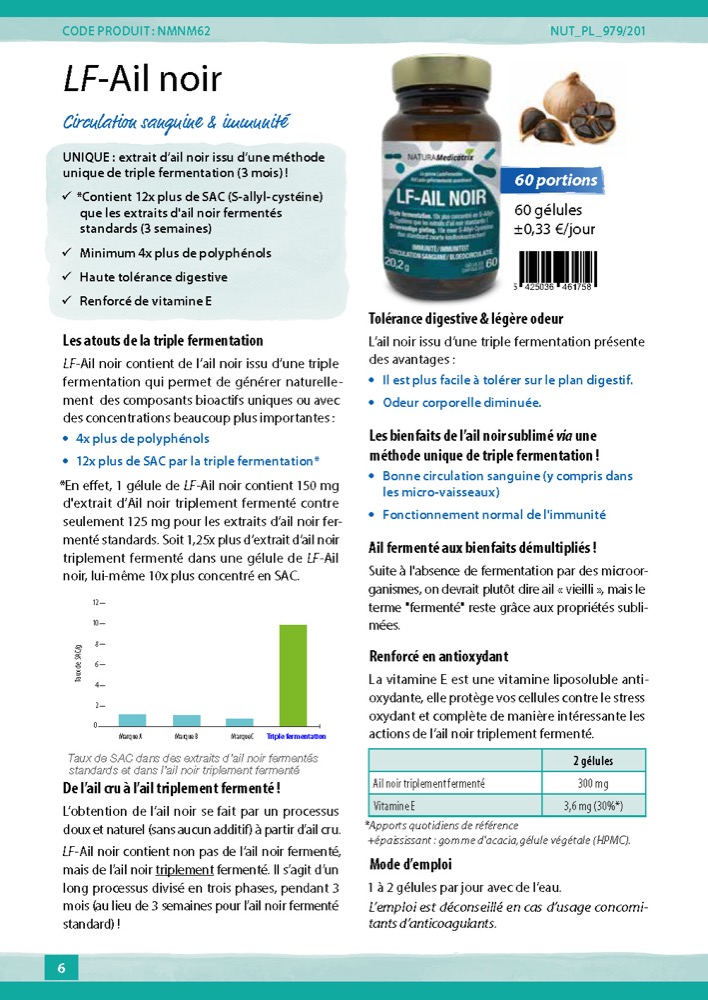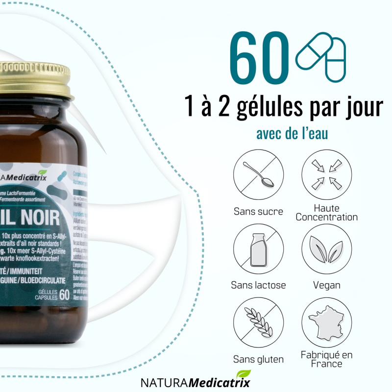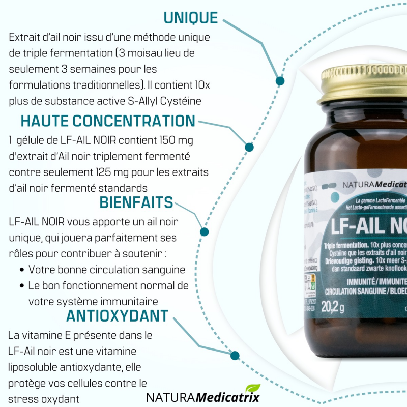 1 gélule de LF-AIL NOIR contient 150 mg d’Ail noir triplement vieilli comparé à 125 mg pour l’ail noir d’autres marques.