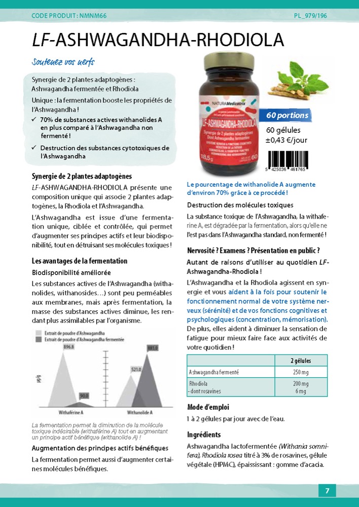 LF-ASHWAGANDHA-RHODIOLA présente une composition unique qui associe 2 plantes adaptogènes, la Rhodiola et l’Ashwagandha.