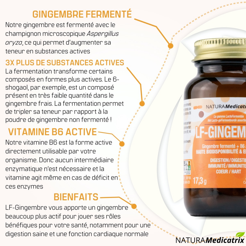 LF-gingembre contient du gingembre beaucoup plus actif, en synergie avec la vitamine B6.