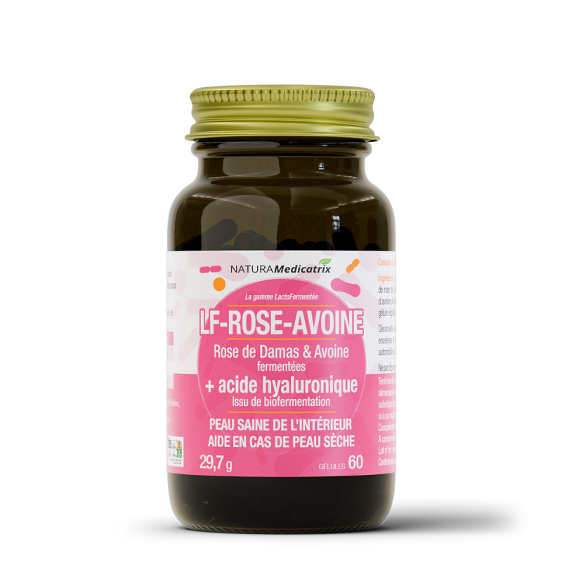 LF-Rose-Avoine est un complément alimentaire innovant qui combine les bienfaits de l'acide hyaluronique (issu de bio-fermentation), de la Rose de Damas et de l'Avoine.