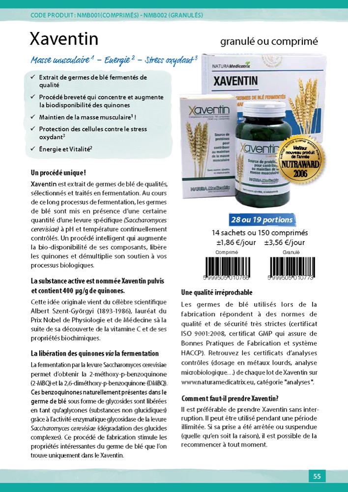 Le germe de blé utilisé pour obtenir le produit Xaventin est équivalent à celui qui se trouve dans les pains et les aliments complets. Lors du processus d’extraction et de fermentation, des changements fondamentaux se déroulent. Par exemple, certains composants sont stabilisés, d’autres sont concentrés. C’est la raison pour laquelle le Xaventin et sa substance active Xaventin pulvis diffèrent complètement du germe de blé traditionnel.