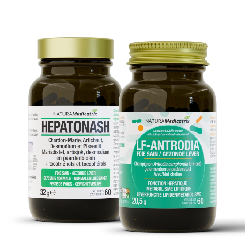 HepatoNASH est la synergie de 4 extraits de plantes spécifiquement sélectionnées pour soutenir votre foie, votre digestion, votre ligne ainsi que pour vous aider à maintenir une glycémie normale. Enrichi en choline, LF-Antrodia est une révolution pour soutenir votre foie. Le champignon qu'il contient possède un spectre d’action unique, il est riche en triterpénoïdes et antroquinonol. C'est un Novel food approuvé par l’EFSA.