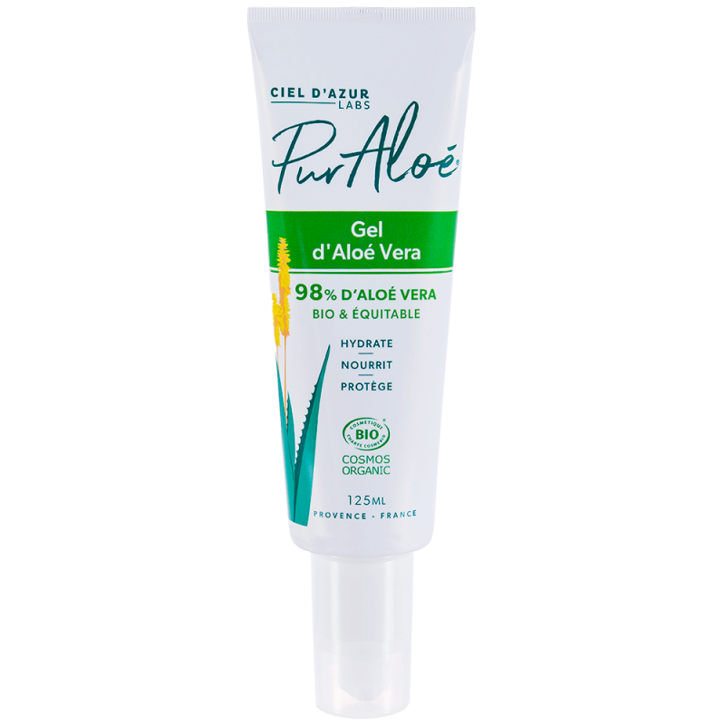 Le Gel d'Aloe vera hydratant Bio 125 ml de PurAloé, certifié bio et titré à 98%, est issu de la pulpe extraite de la feuille fraîche et entière d'aloe vera. Ce gel hydratant est utilisé depuis longtemps comme un traitement contre les plaies, les brûlures, les coups de soleil, les démangeaisons, les piqûres d’insectes mais peut aussi s’utiliser en prévention, pour la santé de la peau, pour l’hydrater ainsi que pour ralentir son vieillissement cutané prématuré.