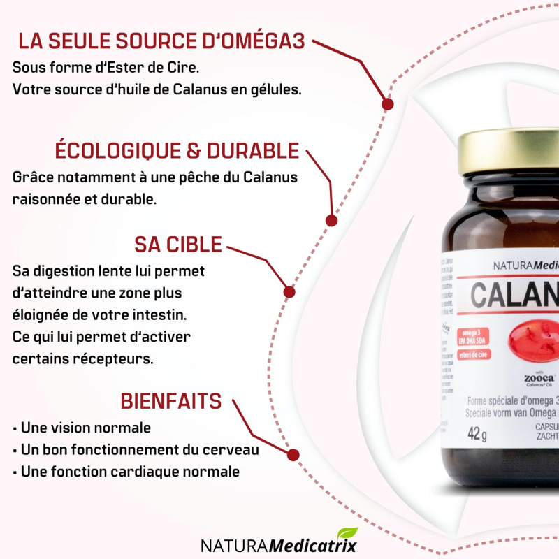 | Atouts | EPA et DHA purs sans contaminants. | Mélange unique d'oméga-3 9 et 11 avec des EPA, DHA et des acides gras mono-insaturés à longue chaîne. | Riche en Oméga-7 rare dans l'alimentation. | Synergie d'Ubiquinol (forme active de la Q10) avec EPA et DHA purs et sans contaminants. | Forme d’acides gras particuliers (esters de cire) qui activent les récepteurs de l’intestin distal. Considérablement plus riche en astaxanthine que le krill. | Ratio EPA / DHA très élevé enrichi en GLA issu d'huile de bourrache. |